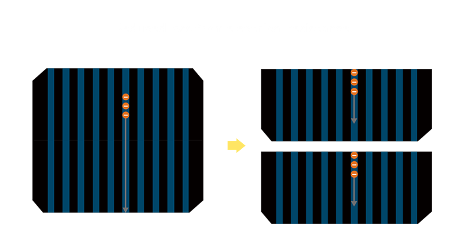 - 多條電極柵結構,可有效降低外力對於電池的影響,限制電池隱裂 (Micro-cracks) 範圍,防止電流傳輸路徑 (Current distribution) 之損壞進一步擴大。
